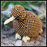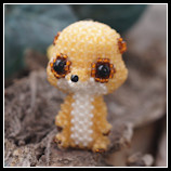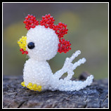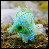 verwendet hatte, wollte ich es nochmal in opaken, comic-hafteren Perlen testen und habe dort kleinere (11/0er) mit 6mm Augen benutzt. Die größeren Glubschaugen gefallen mir
