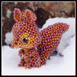 Im Herbst 2025 habe ich 3 neue Waldbewohner gefädelt - Eichhörnchen, Waschbär und Fuchs. Ich habe auch hier wieder ausprobiert, wie die Tiere mit Cabochon-Augen aussehen, deshalb gibt es jedes Tier zweimal.