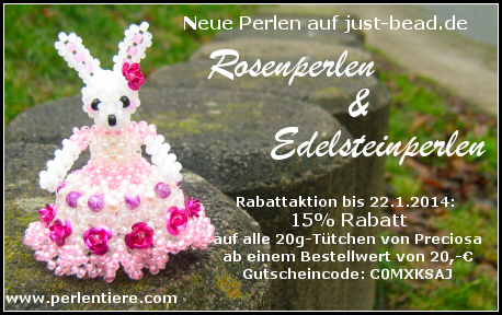 die Rosen an. Sie liegen ganz dicht auf dem Rock auf und geben einen tollen Effekt. Ich habe sie in dem Beispiel auf dem Bild mit den Edelsteinperlen in 4 mm