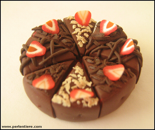 | Kommentar: | Diese Schokotorte habe ich ähnlich gemacht, wie die erste. Diesmal habe ich zum Dekorieren aber nur ungebackenes Fimo verwendet - einmal als Schokosplitter, dann als weiße Schokosplitter und als Glasur-Streifen. Ich habe einfach ein wenif experimentiert, was mir gefällt. |