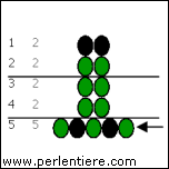 diese Weise weiter. In der 5. Reihe werden 2 Perlen in schwarz