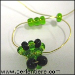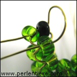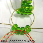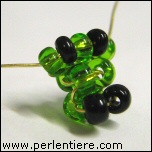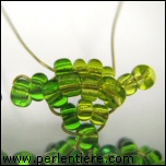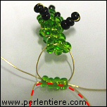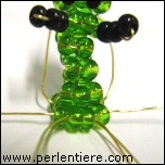 Jetzt zieht ihr den Draht durch die nächsten 2 Perlen der Körperreihe. |
