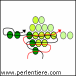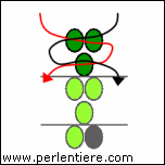 Die zweite Beinreihe besteht nur aus 1 Perle und wird nach innen gelegt, damit die Beine plastisch werden. |