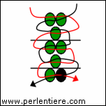 werden die Hörner gefädelt. Dazu fädelt man die 4 Perlen der