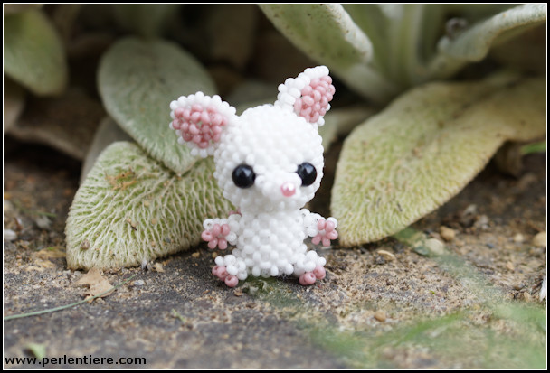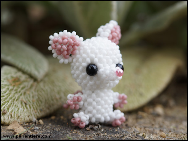 Kommentar: | Bei der Maus habe ich eines der Ohren irgendwie an anderen Perlen angesetzt. Dadurch guckt sie neugierig und ein bisschen dümmlich zugleich drein, das finde ich putzig ^^ |