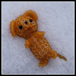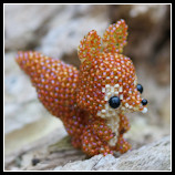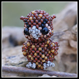 verwendet hatte, wollte ich es nochmal in opaken, comic-hafteren Perlen testen und habe dort kleinere (11/0er) mit 6mm Augen benutzt. Die größeren Glubschaugen gefallen mir