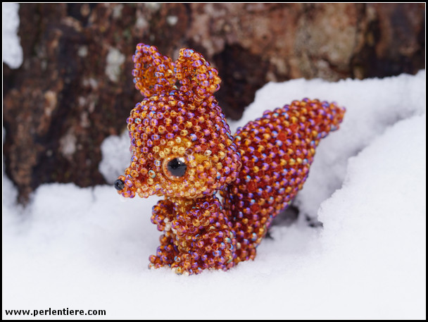| Kommentar: | Im Herbst 2025 habe ich 3 neue Waldbewohner gefädelt - Eichhörnchen, Waschbär und Fuchs. Ich habe auch hier wieder ausprobiert, wie die Tiere mit Cabochon-Augen aussehen, deshalb gibt es jedes Tier zweimal. Insgesamt bin ich ziemlich zufrieden, aber alles in Allem mag ich die Wachsperlen-Versionen lieber. |