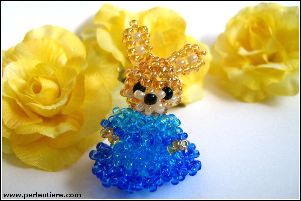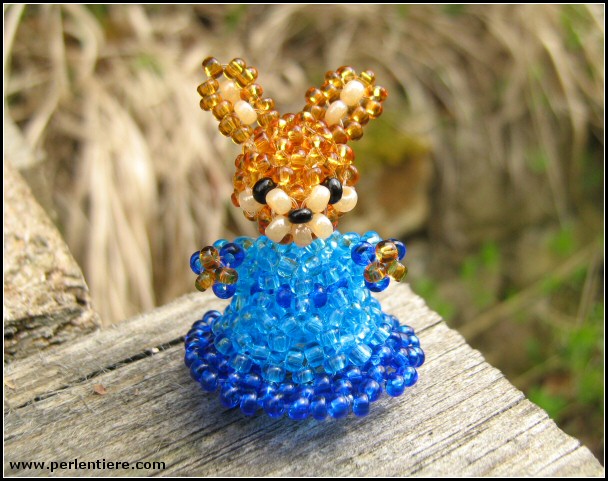 | Kommentar: | Dieses kleine Kaninchen entstand im Urlaub, als ich viele Perlen aber kaum Anleitungen mithatte. Ich wollte eine kleinere Figur erschaffen, deren Kleid nicht so voller Rüschen ist und fr das man keine größeren Perlen benötigt. Hier ist also mein kleines Hasenmädchen. |
