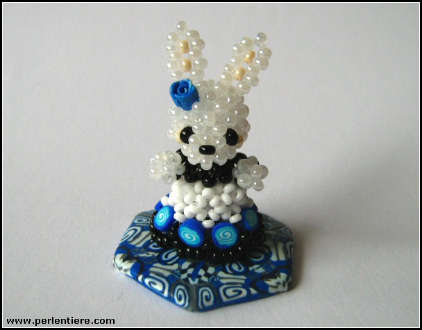 | Kommentar: | Die Spiralperlen für diesen hasen habe ich von Katinka bekommen und ich wusste sofort, dass ich damit ein solches Häschen machen möchte. Dann habe ich an einem Fimobasteltag mein erstes Kaleidoskop fimoliert und dafür extra Farben gewählt, die zu dem Hasen passen. Ich mag die Base (und den Hasen). |