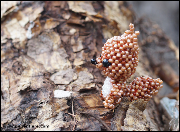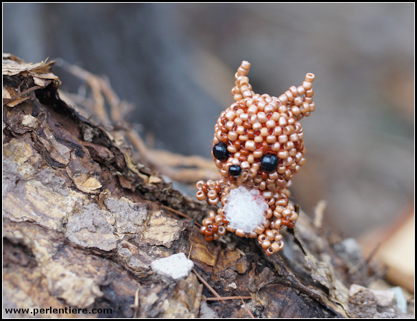 Kommentar: | Für das Eichhörnchen-Fell habe ich Resteperlen gemischt, von denen ich jeweil nur noch ein paar kleine Mengen übrig hatte. Das mache ich nach wie vor sehr gern, um etwas Abwechslung reinzubringen - gerade jetzt, wo es immer weniger verschiedene Farben in 9/0er-Größe zu kaufen gibt. |