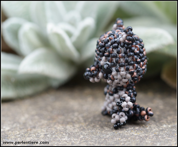 Kommentar: | Für Maries Wolf habe ich mal meine Vitrail-Perlen rausgeholt (Capri sunset heißt die Farbe). Leider gibt es die in 9/0 nicht mehr zu kaufen, dabei ist sie so schön gemischt-gefärbt... Das gibt dem Wolfsfell gleich ein scheckig-braunes Aussehen. |